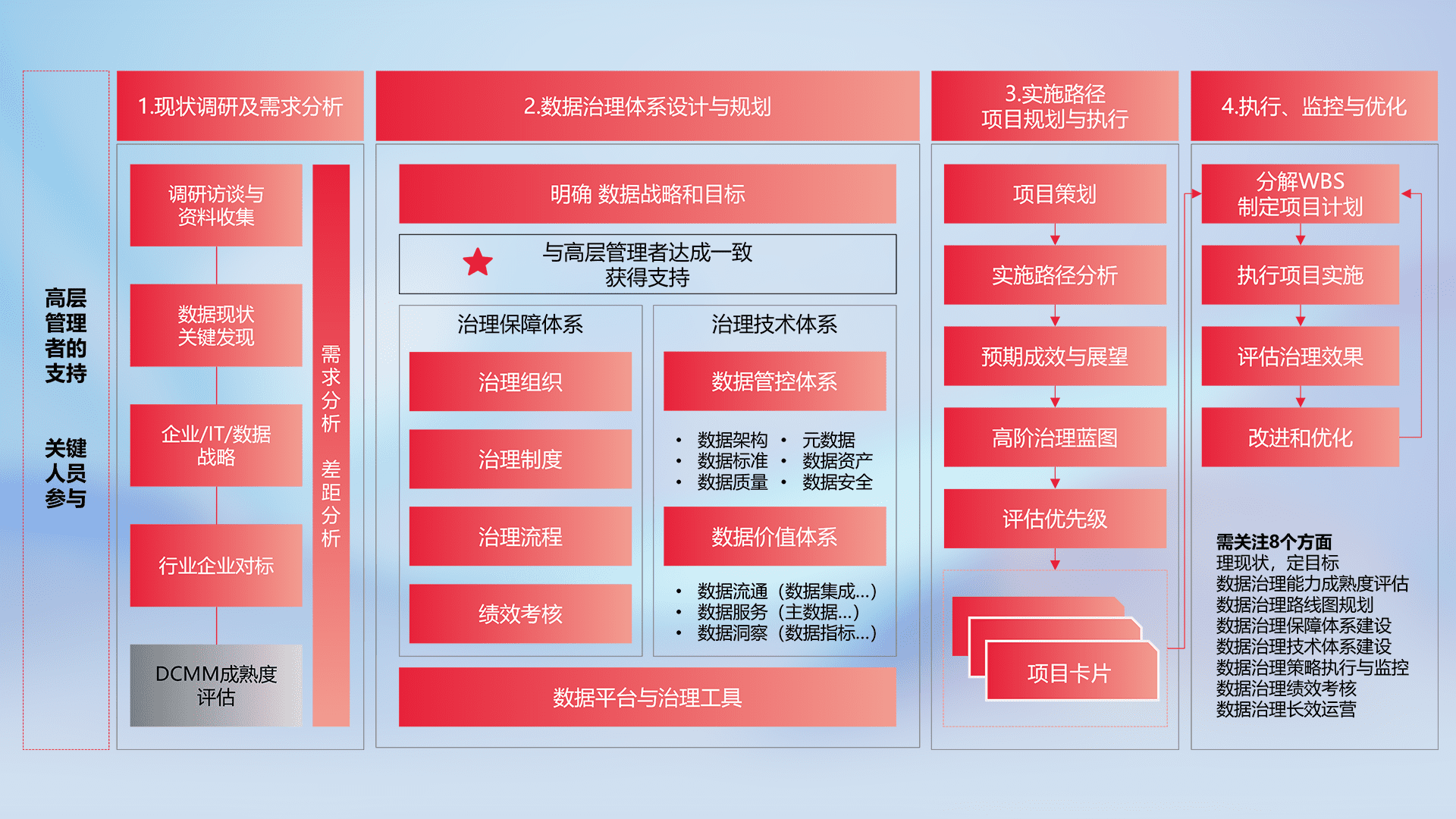 以高阶专业视角定制解决方案,,结合行业最佳实践,,,覆盖数据全生命周期管理,,,确保策略落地执行,,,,助力企业构建高效、、、可持续的数据管理体系,,,,推动数字化转型。。